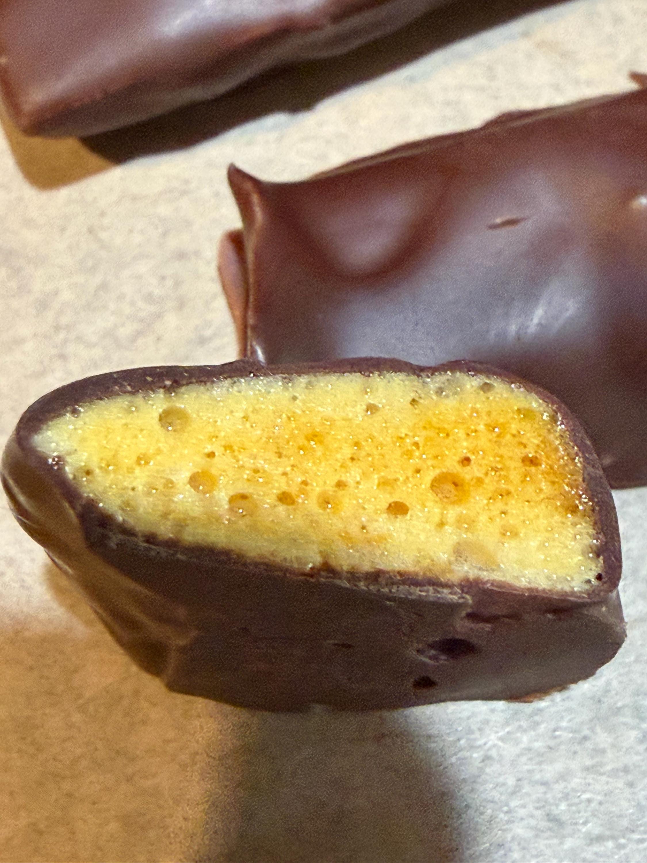 Honeycomb with Raspberry Flavoring and Dark Chocolate Coating